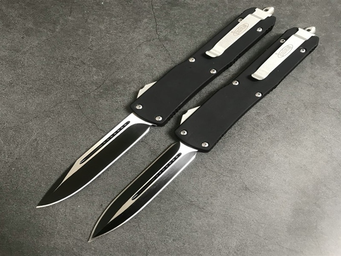 Microtech微技术121直出跳刀 全长:25.4cm 刃长:10.2cm 刃厚:3mm 刃宽:2.1cm 柄长:15cm 刃材:440C 硬度:58 净重:150g 毛重:250g(含包装) 表面:拉丝 柄材:锌铝合金 锁闭:直出弹簧刀 备注:带玻璃锥、腰夹
