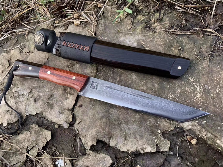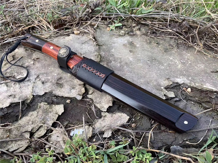 刀身材料百炼折花钢,钢火不用怀疑非常好,刀鞘黑檀木,每一把的纹路都不一样,都是独一无二的精品