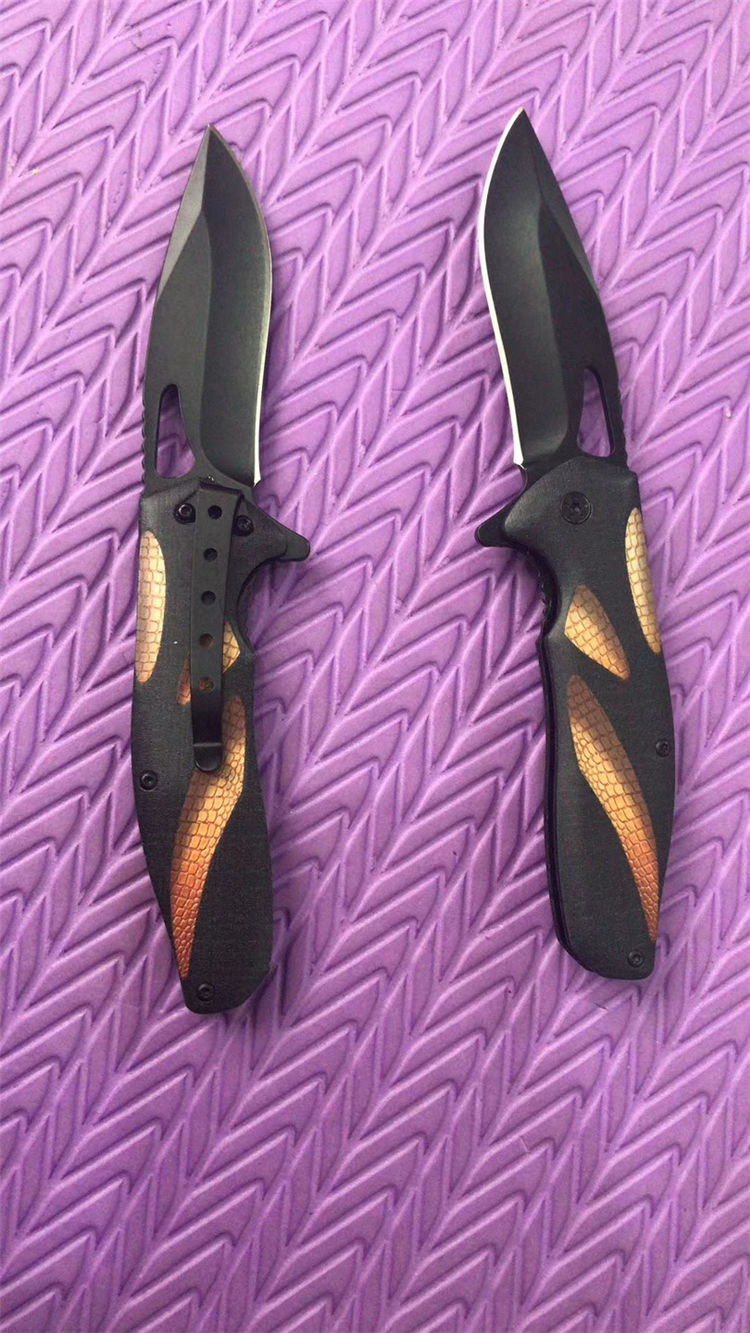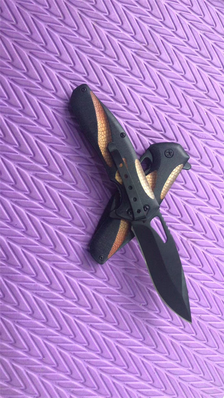 黑鸟快开折刀 全长:20.0cm 刃长:8.8cm 柄长:11.2cm 刃宽:2.8cm 刃厚:2.5mm 刃材; 440 重量:130(含包装) 硬度:57HRC 表面:黑钛 柄材:彩木 锁型:线锁