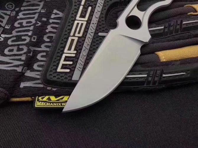 小蚂蚁直刀 全长:140mm 刃长:55mm 柄长:85mm 刃宽:22mm 刃厚:4.0mm 刃材:VG10 重量:74.5g(含K鞘) 硬度:58HRC 表面:珠光面镀硬铬 柄材:一体 锁型:定锁 其他:配k鞘