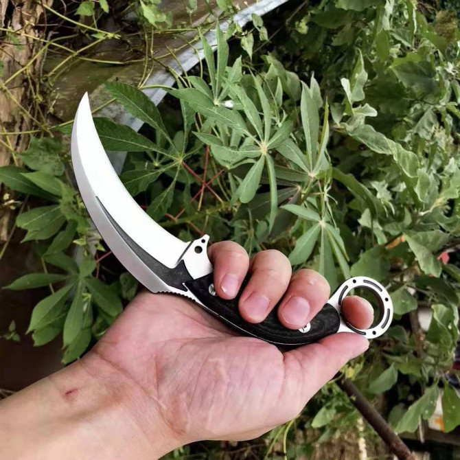 高端材料进口DC53模具钢、碳纤维手柄,真空油淬热处理技术,硬度可达61HRC保持更好的韧性、超级锋利,爪刀中的极品每把刀都有独一无二流水号001-380