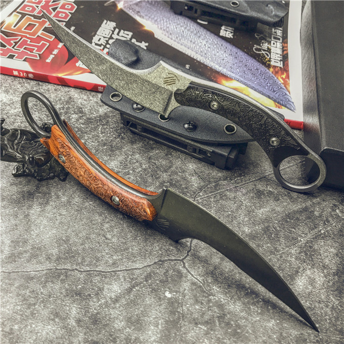 巴斯蒂内利灰鲭鲨木柄雕刻版直刀