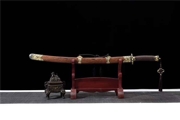 传统三色清刀 专业测试、请勿模仿 工艺:龙泉古法传统手工艺 装具:合金 刃材:高性能猛钢 柄材:花梨木 鞘材:花梨木 赠品:锦盒、养护油、布