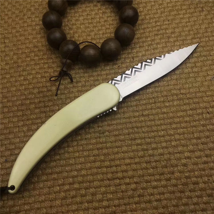 伟大流畅的弹簧协助和独特的风格,440不锈钢羽毛完成普通刀片尼龙纤维提手W/珠状图案皮绳和珠子