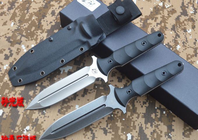 LW(利威)破煞-双刃战术刀 刃材:D2 全长:263mm 刃长:14mm 刃厚:5.3mm 刃宽:33mm 表面:精幼砂光 硬度:HRC59-60 (真空油淬热处理) 手柄:G-10+表面防滑处理 刀鞘:进口Kydex鞘 (织带+K鞘夹) 重量:0.5KG(含包装物) 购买时需要注明是要购买什么版本的(砂光版、沧桑石洗版)